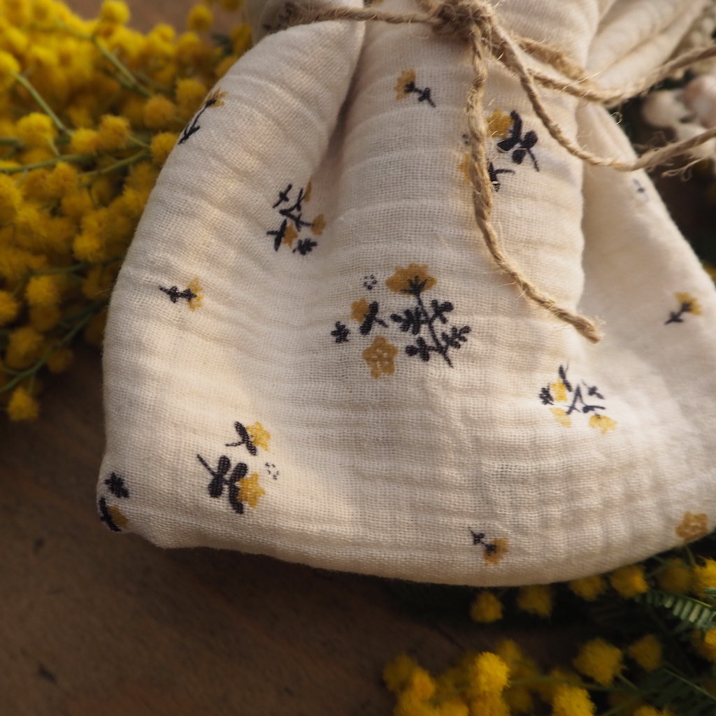 • Cajita de nacimiento con productos hechos a mano en tonos ocres.
